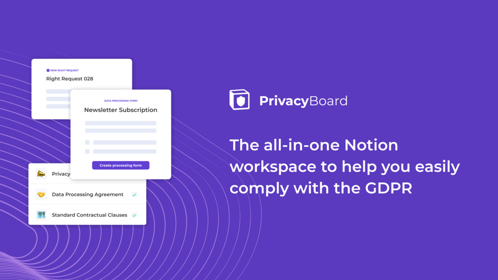 Privacy Board is the all-in-one Notion workspace to help you easily comply with the GDPR.